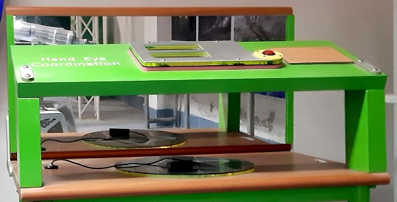 Press the start button. Stand in front of the mirror on the display device. Then try to draw the star by running your hand over the star line with the electric pen. If you are 100% successful, it will show 0% error.