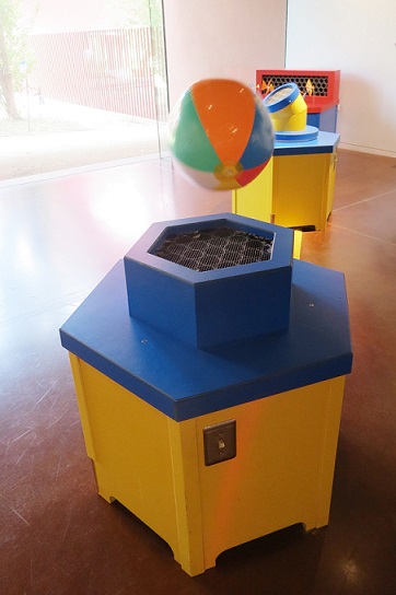 এই প্রদর্শনীবস্তুটি বায়ু গতিবিদ্যায় বার্ণৌলির সমীকরণের ব্যবহারিক প্রয়োগ হতে যাদুকরী আনন্দ প্রদান করে। বার্ণৌলির সমীকরনটি হলোঃ =ধ্রুবক। p হলো আঞ্চলিক চাপ ,রো হল প্রবাহীর ঘনত্ব ,g এ স্থানের অভিকর্ষজ ত্বরণ,v হল আঞ্চলিক বেগ ,এবং z হলো কোন সুবিধাজনক উচ্চতার সাপেক্ষে আঞ্চলিক উলম্ব উচ্চতা।প্রবাহী পদার্থের ক্ষেত্রে এই সমীকরণের মুখ্য বিষয় হল শক্তির নিত্যতা তত্ত্বের নামান্তর মাত্র ।এখানে জেট (z) এর অবদান নগণ্য মনে করা যেতে পারে ।কারন এখানে প্রবাহীটি হলো বাতাস এবং এতদসংশ্লিষ্ট প্রদর্শনের ক্ষেত্রে উচ্চতার পরিবর্তন উল্লেখযোগ্য নয় ।ফলে যেখানে আঞ্চলিক বেগ বেশি সেখানে আঞ্চলিক চাপ বেশি অথবা যেখানে আঞ্চলিক বেগ কম অথবা এই নিয়ম প্রযোজ্য ।ব্লোয়ার হতে উলম্ব ভাবে উপরের দিকে বায়ু নির্গমণের মাধ্যমে একটি অঞ্চল সৃষ্টি করা হয় ।এই জেট (z) অঞ্চলটিতে তার আশে-পাশের তুলনায় নিম্নচাপ থাকে ।এই কারনে বলটি জেট (z) অঞ্চল হতে অন্যত্র যায় না । জেট (z) অঞ্চলের ভিতরের বায়ু কণাগুলি লম্বিক ধাক্কার মাধ্যমে বলটির ওজনকে সাম্যে আনায়ণ করা হয় ।