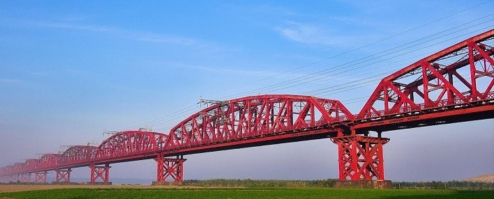 Hardinge Bridge is a steel railway bridge over the river Padma located at Paksey, Ishwardi, Pabna in western Bangladesh. It is named after Lord Hardinge, who was the then Viceroy of India. The bridge is almost 1.8 kilometres in length and the second largest railway bridge of the country. Alexander Meadows Rendel was the architect of the bridge . British engineer Sir Robert Gailes worked as the chief engineer of the constriction . Finally on 4 March ,1915 Lord Hardinge inaugurated the bridge. During the Liberation War of Bangladesh the bridge was severely damaged on the 13th December,1971. After the liberation, the bridge was reopened on 12 October 1972, repaired by the joint venture of Bangladesh and India.The Japanese Government helped to reconstruct the bridge . In 1988,the Hardinge bridge model was constructed by |Railway Factory and Bridge Factory,Saidpur. The railway bridge is an unique example of architectural industry in western Bangladesh.