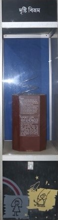 প্রদর্শনীবস্তুটির ঘূর্ণায়মান রিংগুলির দিকে তাকিয়ে থাকলে মনে হবে রিংগুলি একটির উপর আর একটি ঘুরছে।