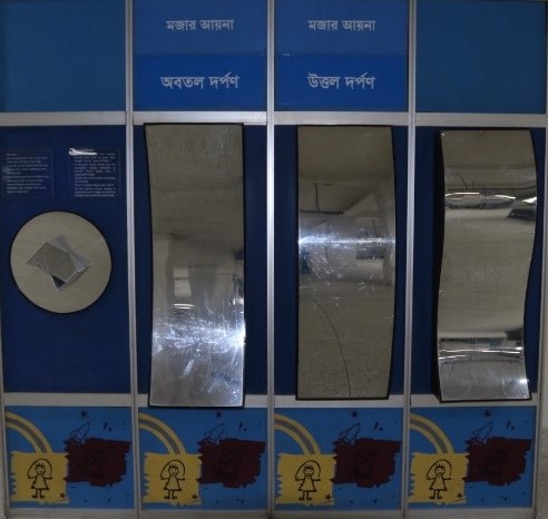 মজার আয়নাগুলি সাধারণ আয়নার চেয়ে ব্যতিক্রমধর্মী। এই আয়নাগুলির সামনে দাঁড়ালে নিজের চেহারা কোনটায় বামুন, কোনটায় লম্বা, কোনটায় আবার সংকুচিত দেখায়।